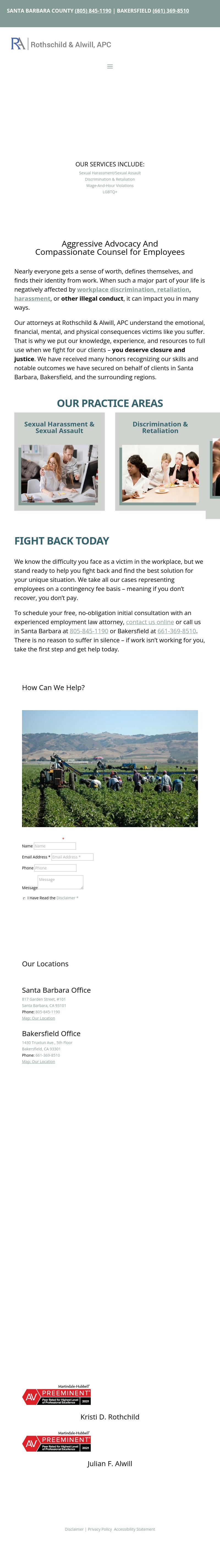Rothschild & Alwill, APC Santa Barbara Employment Lawyers | Employee Rights | Labor Law Firm Based in Santa Barbara and Bakersfield, California, Rothschild & Alwill, APC, represents employees and employers. Call 805-845-1190 to learn more.