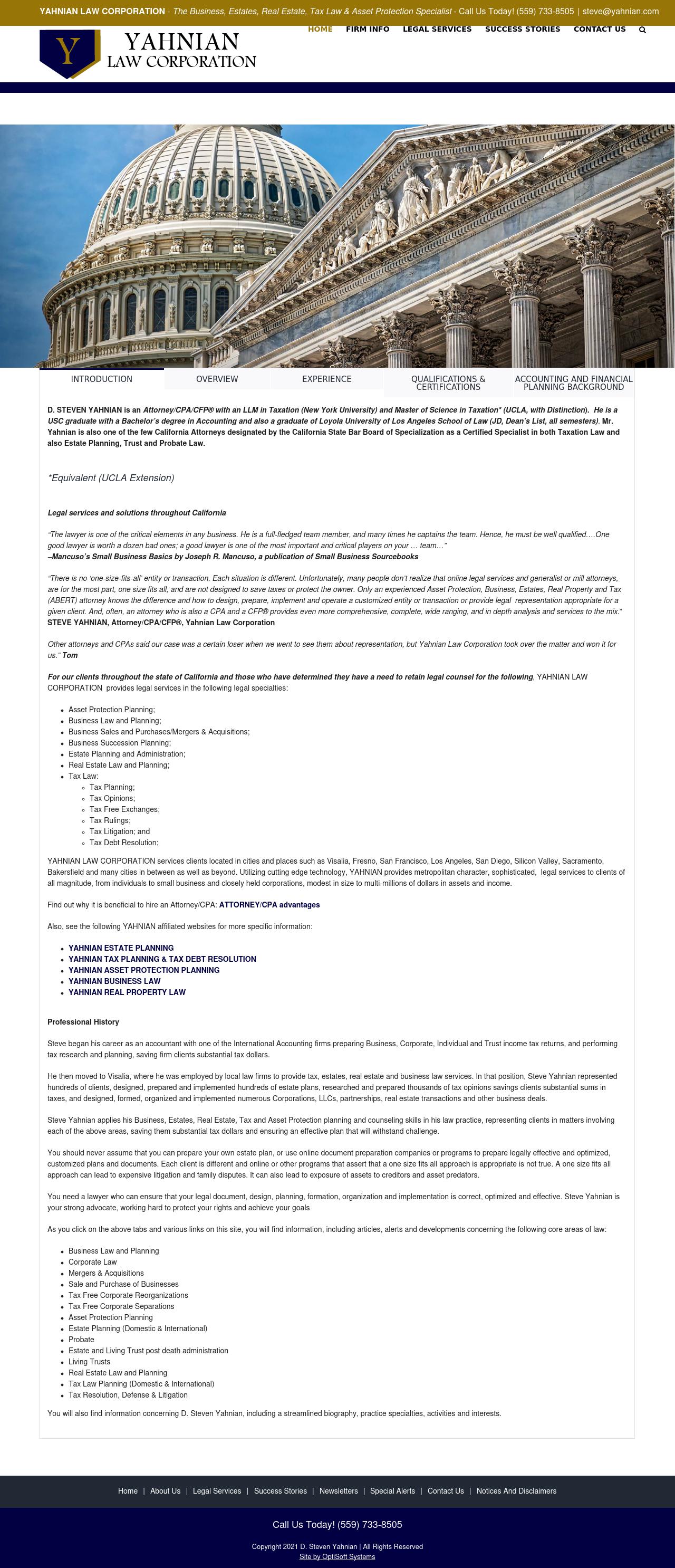 Yahnian Law Corporation Yahnian Law Corporation - Tax Law, Asset Protection, Estate Planning YAHNIAN LAW CORPORATION is a Visalia based Business and Corporate, Estate Planning and Administration, Probate, Real Property, Asset Protection Planning and Tax Law firm.